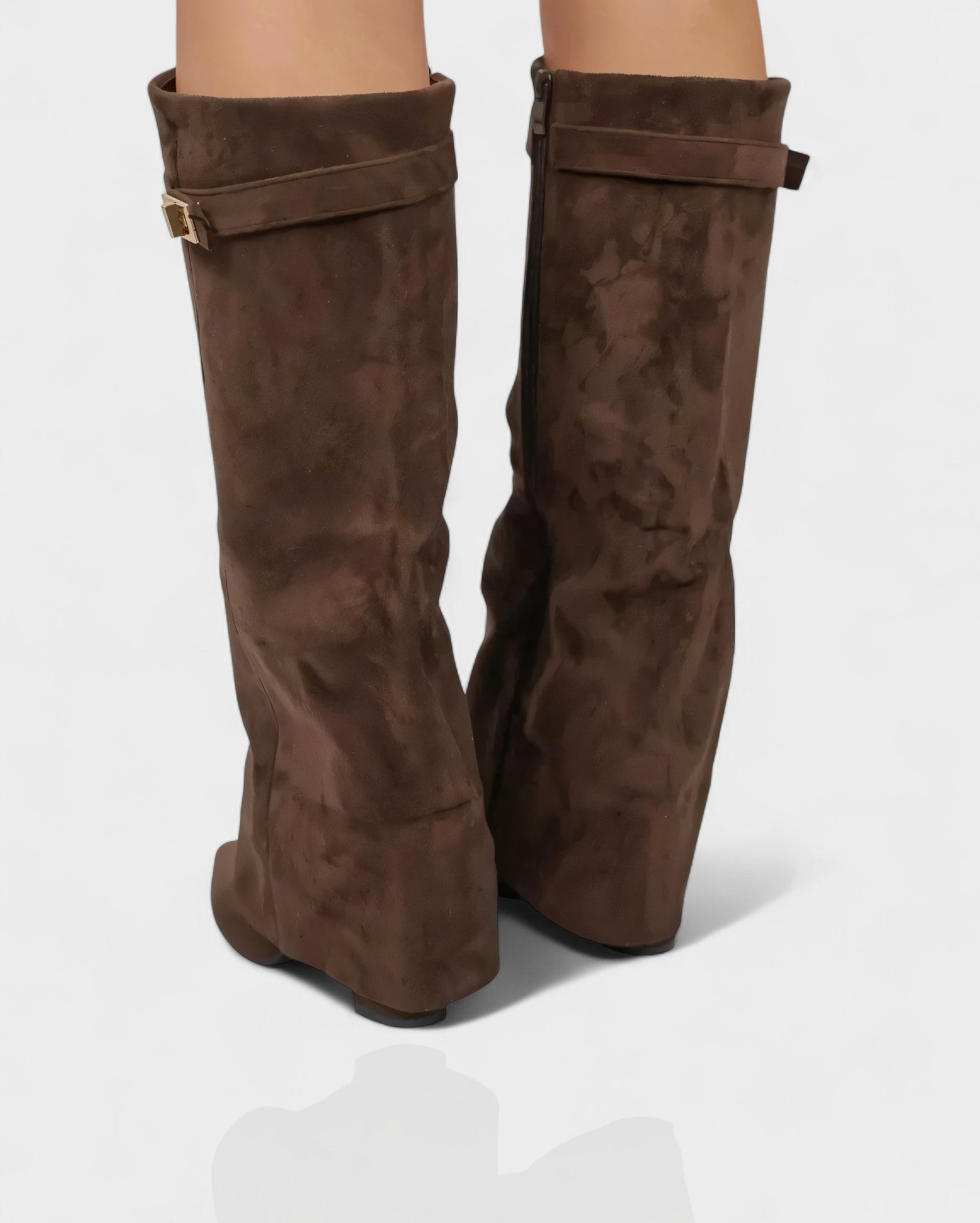 Confectionnées avec soin, avec un bout carré et ornées de rivets élégants, les bottes Nemesia à talons blocs et rivets sont un incontournable pour toute personne à la pointe de la mode. Ces bottes unies présentent un talon haut et épais en métal résistant, microfibre, PU, caoutchouc et viscose. Rehaussez votre look avec ces bottes-pantalons tendance.