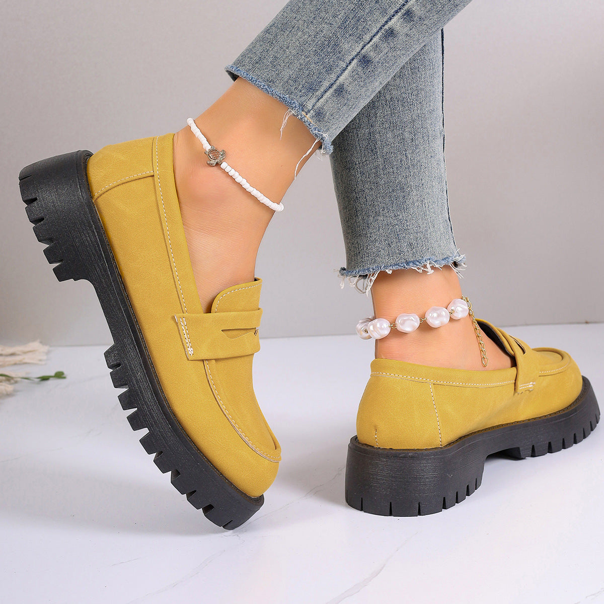 Fabriqués avec soin avec une tige en PU et une semelle en caoutchouc, ces mocassins à plateforme Gerbera de couleur unie apporteront une touche chic et confortable à toute garde-robe. Dotés d'un bout rond et d'une doublure en microfibre, ces mocassins offrent une plateforme élégante et résistante, idéale pour une utilisation quotidienne. Rehaussez n'importe quelle tenue avec ces chaussures polyvalentes et tendance.