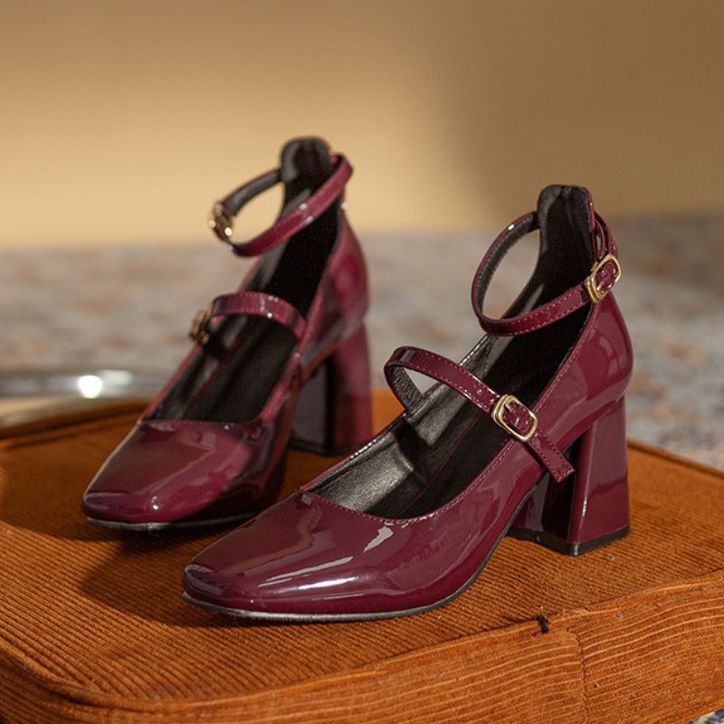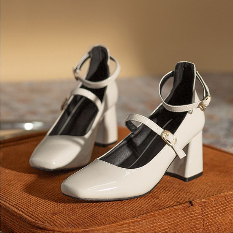 Elevate your style with our Mayflower Mary Jane shoes. Made with high-quality patent leather and a sturdy block heel, these shoes provide both durability and comfort. Featuring a square toe and ankle strap with Velcro for a secure fit, these Mary Janes are perfect for any occasion. Crafted with microfiber, PU, and rubber for a sleek and solid finish.