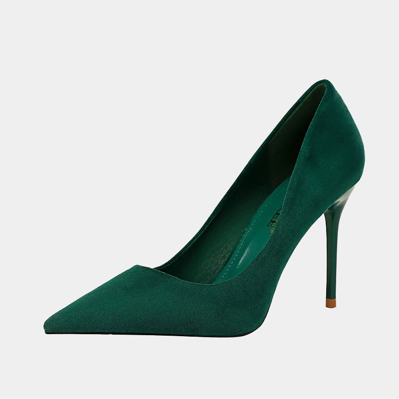 The Aster pump delivers simple and sleek, featuring a 3.5inch stiletto heel, pointed toe and reflective suede surfaces.